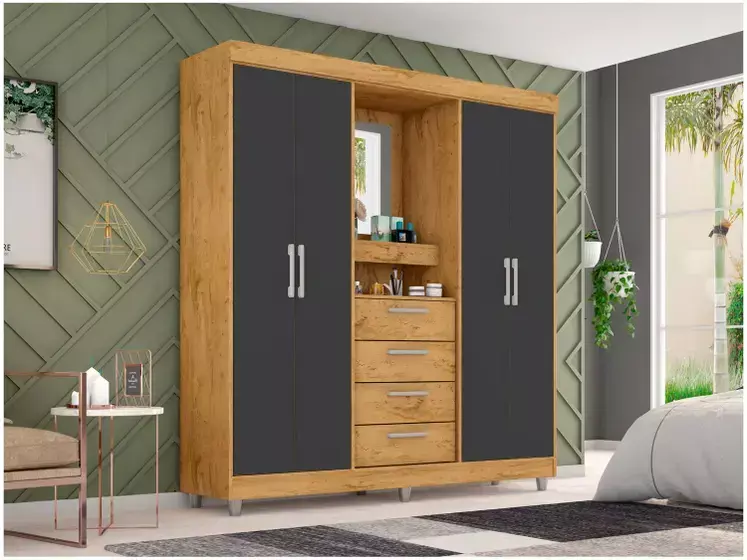 Garanta já o seu Guarda-roupa com Espelho 4 Portas 4 Gavetas Araplac Pequim e transforme seu quarto em um espaço organizado, prático e cheio de estilo todos os dias!